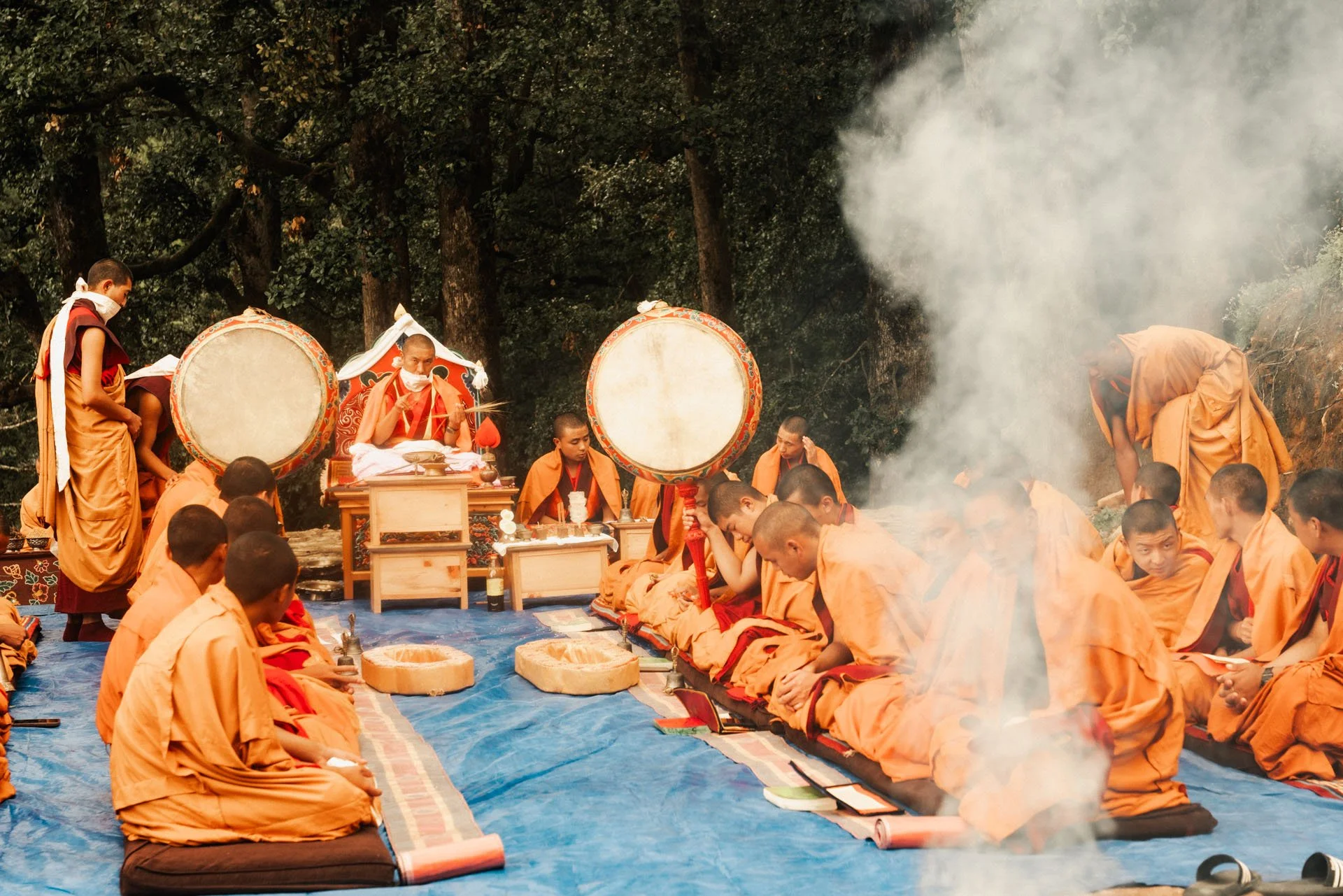 Drums. Low horns. The crackle of incense catching flame. Monks chanting for hours without urgency. Ceremonies as ongoing rhythms of daily life.